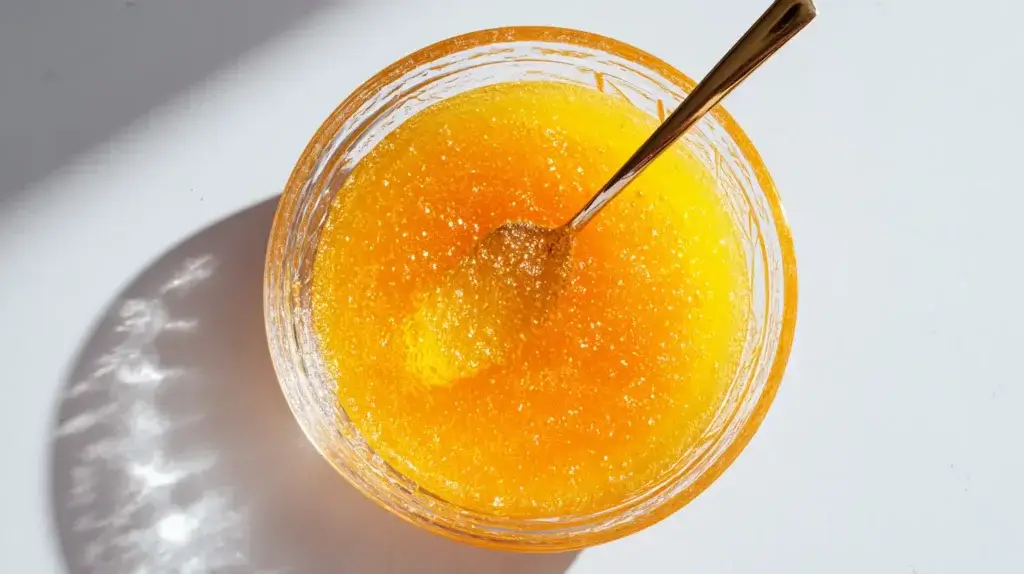 - Stir slowly for 60–90 seconds until completely dissolved and clear.